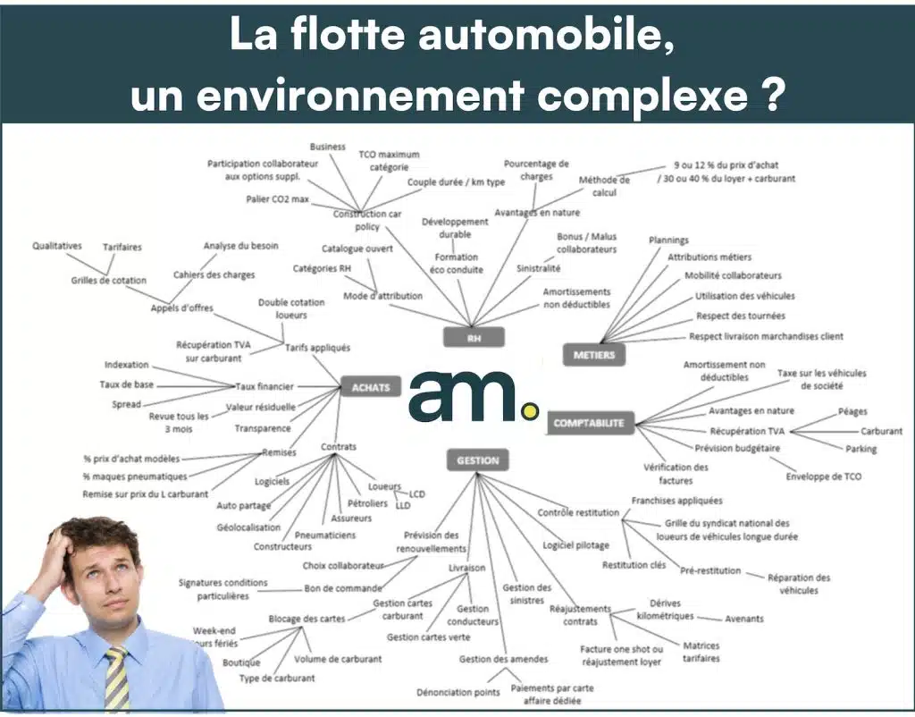 Voici un visuel qui permet d’illustrer la complexité de la position du gestionnaire dans l’environnement du fleet management 👉🏻